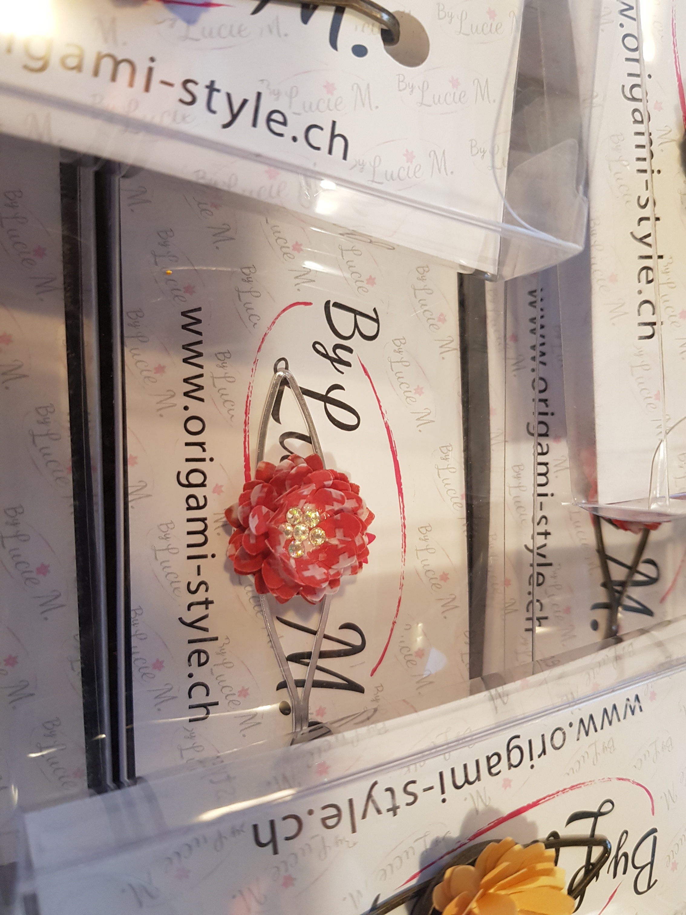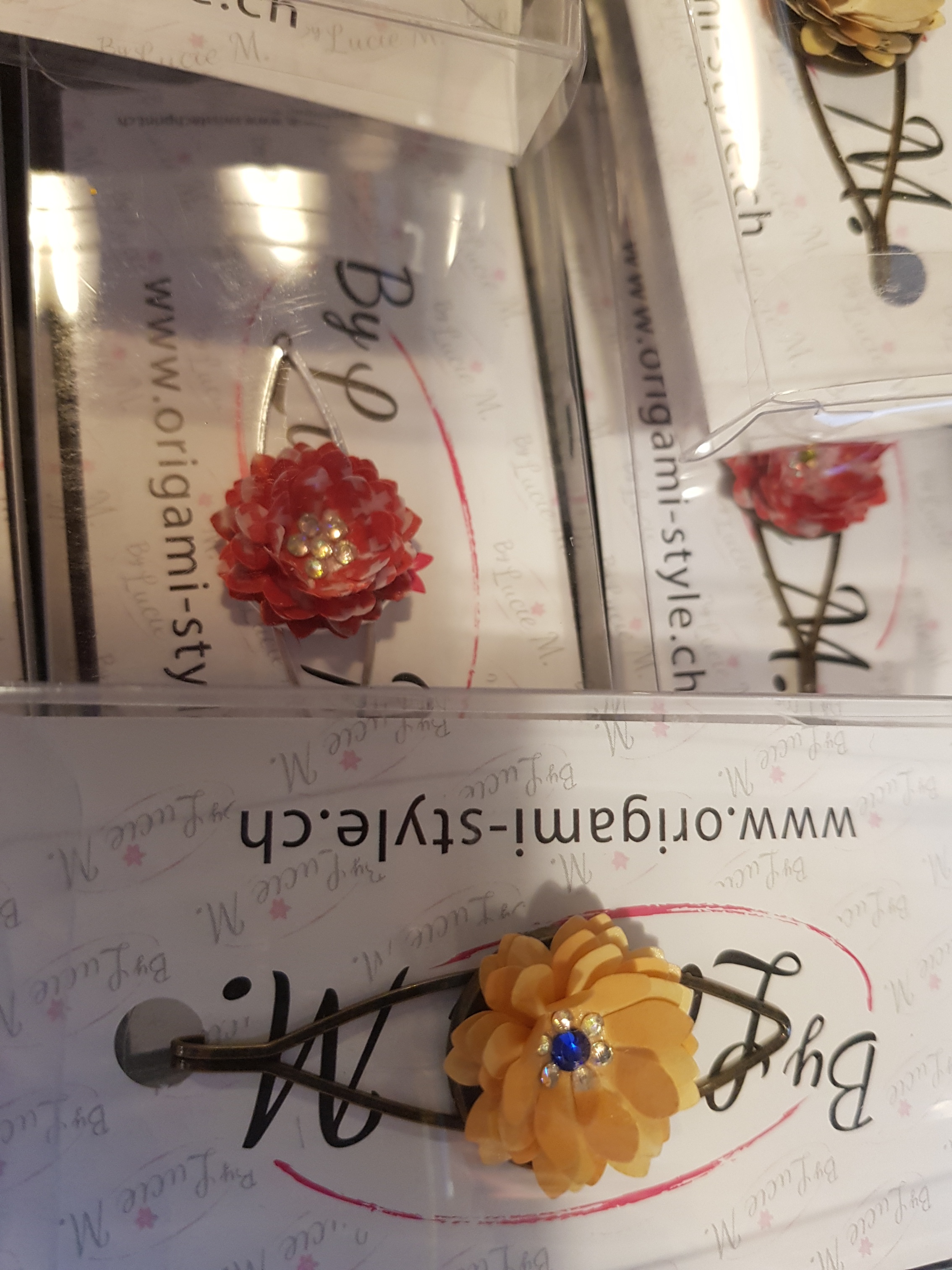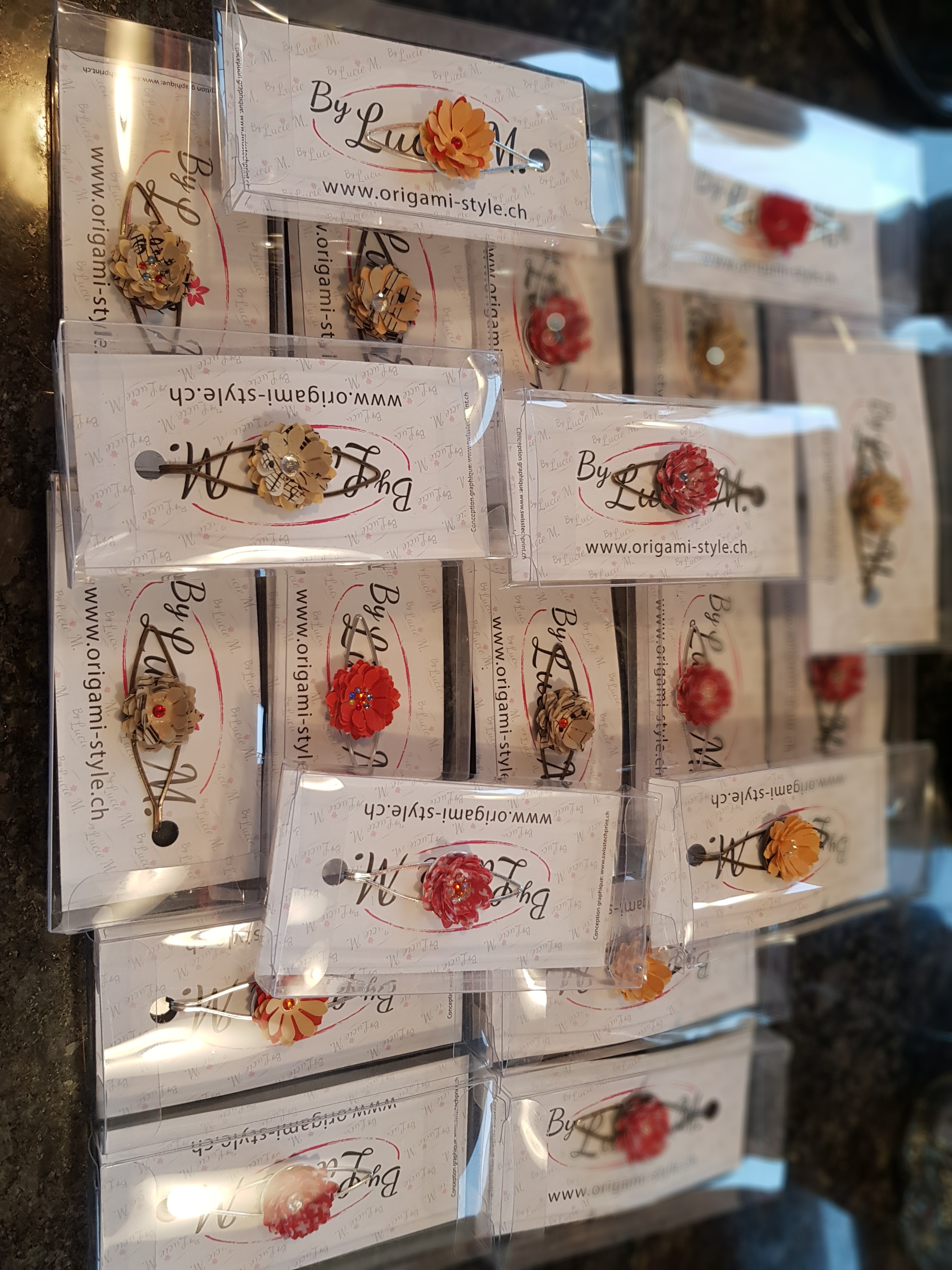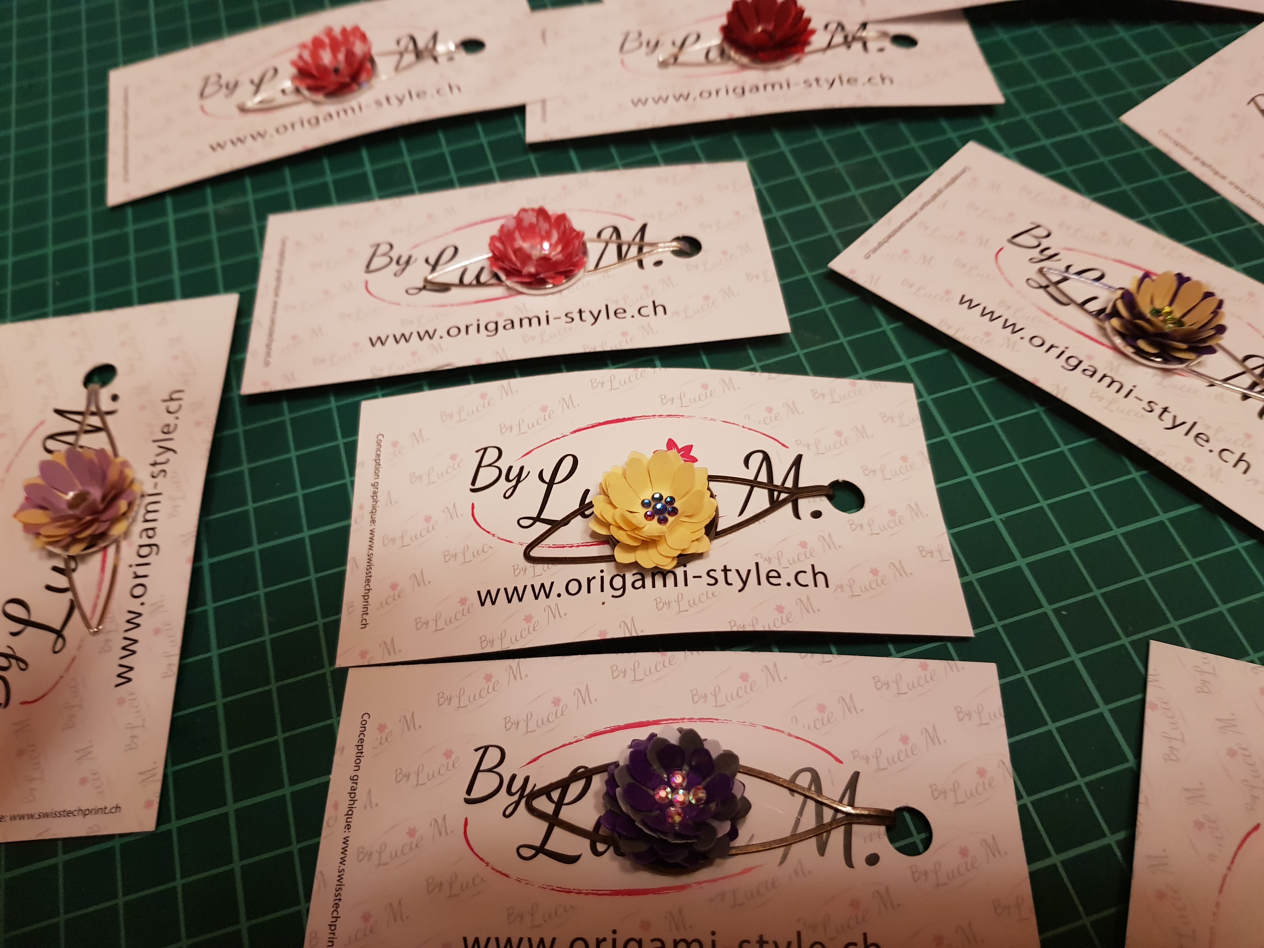 Pinces à cravate en papier recyclé, vous pouvez les utiliser aussi comme pinces à cheveux ou sur un foulard en bronze ou en métal.Vous avez la possibilité de personnaliser avec votre LogoTarifs 11.80.-CHF pce + frais de port 7.-CHF