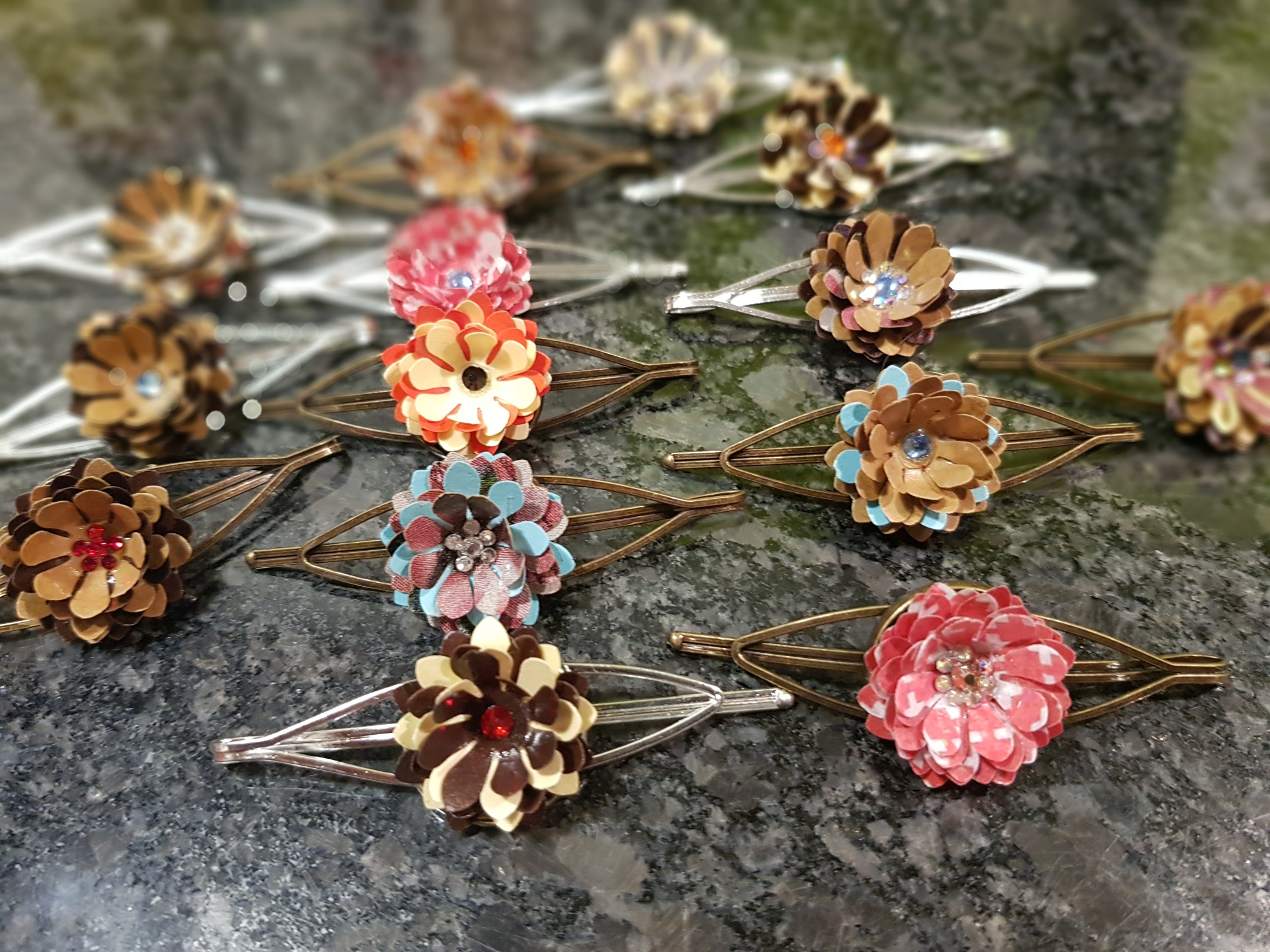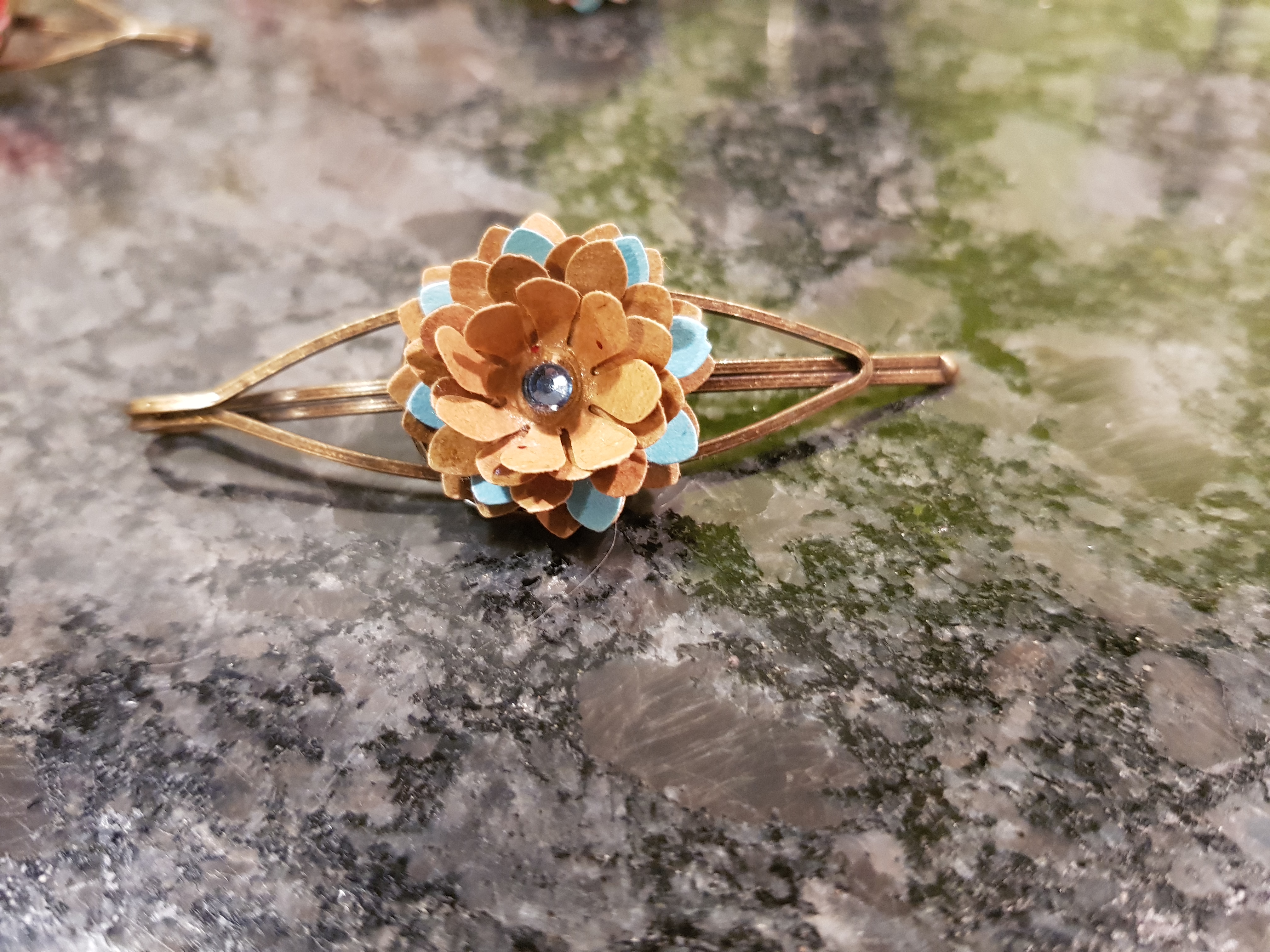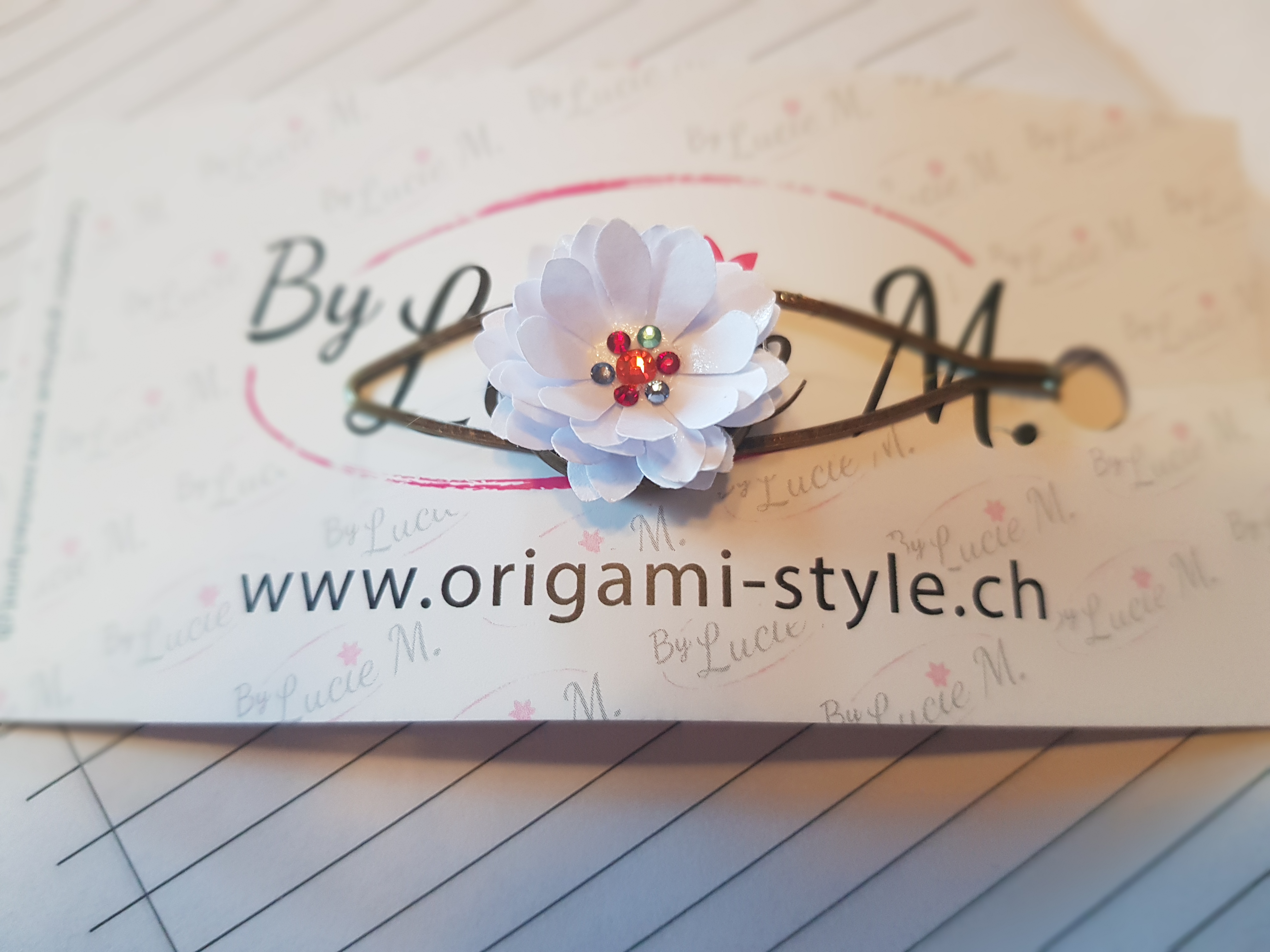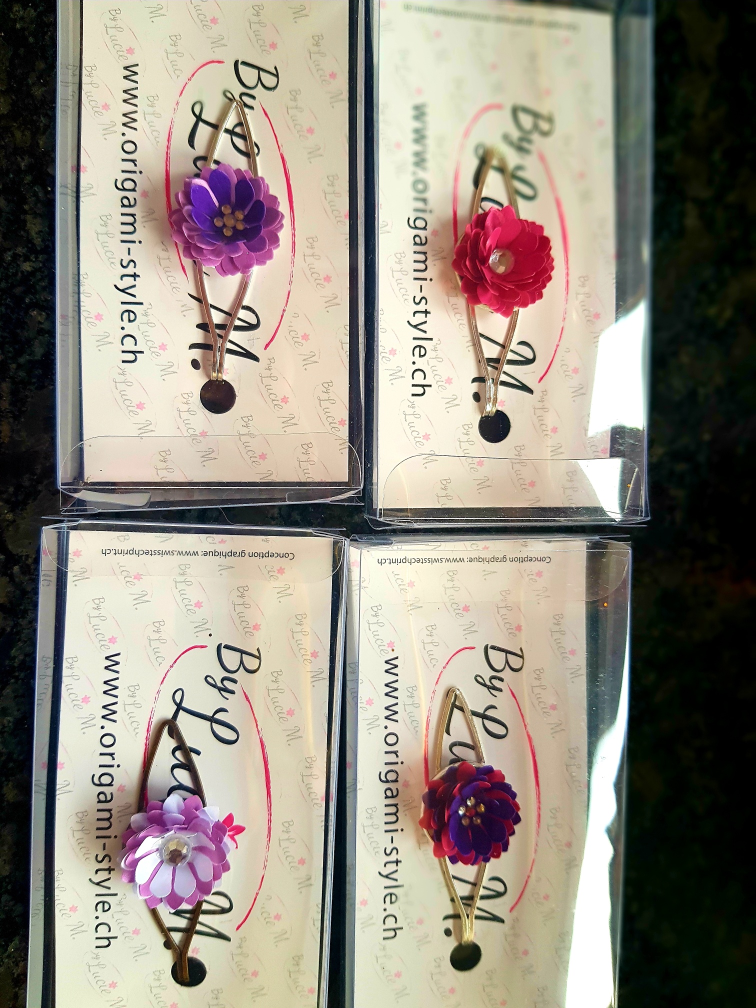 Pinces à cravate en papier recyclé, vous pouvez les utiliser aussi comme pinces à cheveux ou sur un foulard en bronze ou en métal.Vous avez la possibilité de personnaliser avec votre LogoTarifs 11.80.-CHF pce + frais de port 7.-CHF